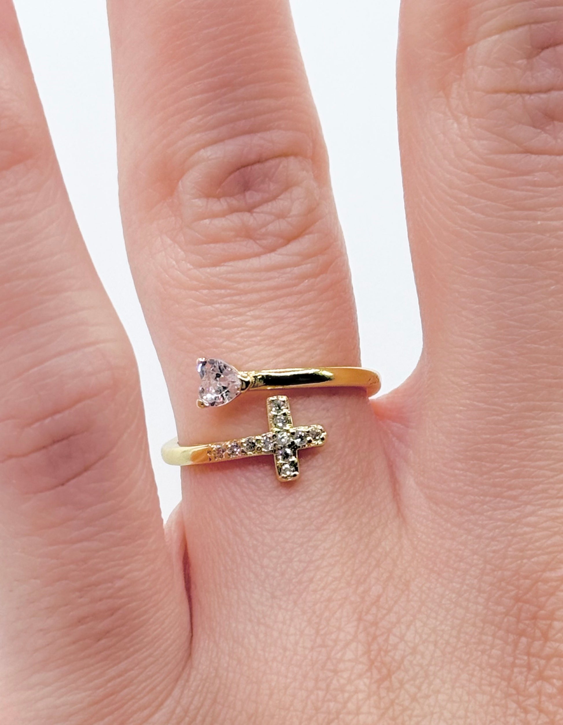 Feminine and refined, this 18K gold-plated cross ring celebrates faith and style.